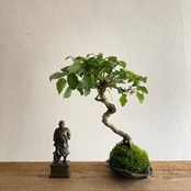 微粒赤玉土、ひゅうが土、籾殻腐葉土、ヒメオキナゴケ使用。鉢の素材は黒石です。