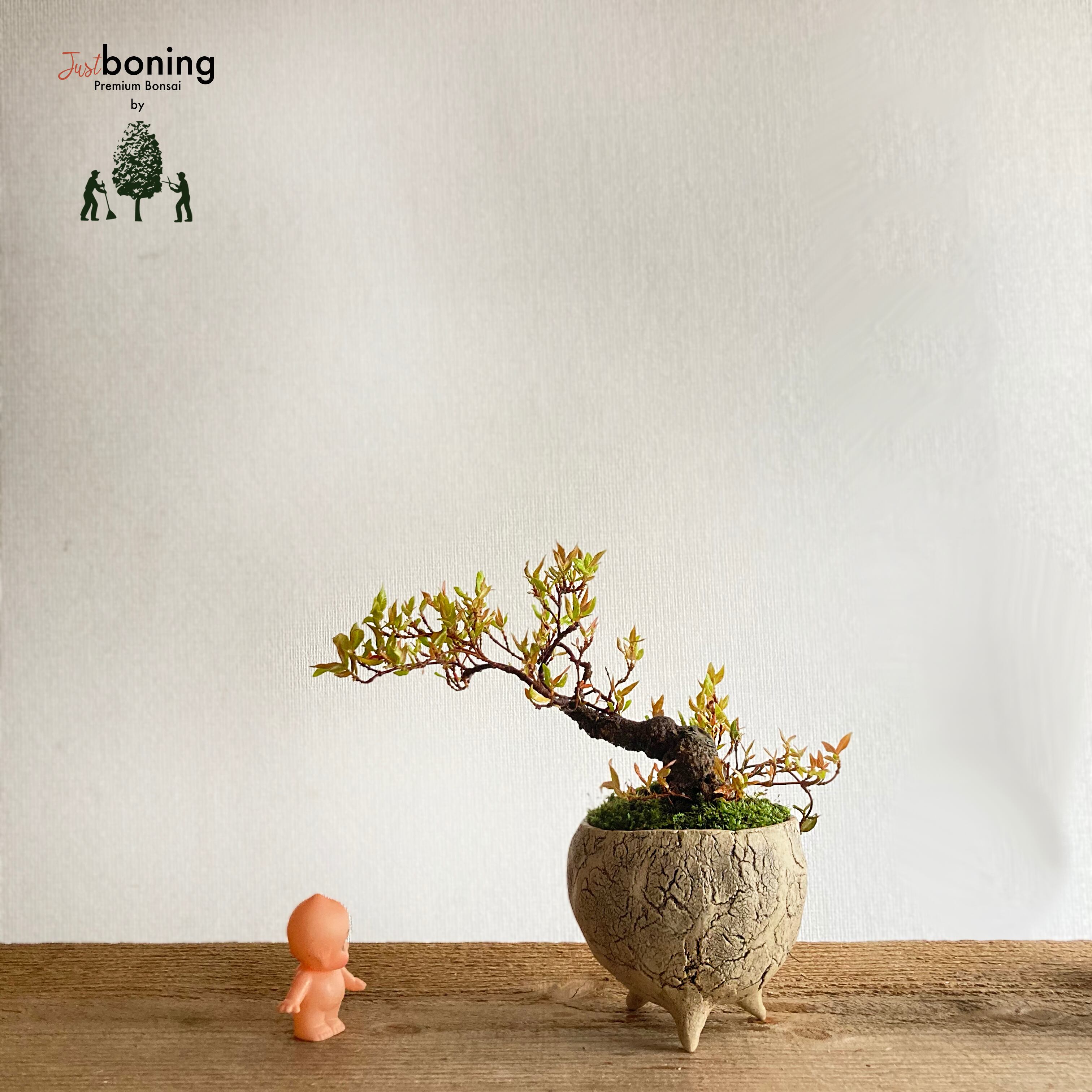 微粒赤玉土、ひゅうが土、籾殻腐葉土、ヒメオキナゴケ使用。鉢の素材は黒土です。