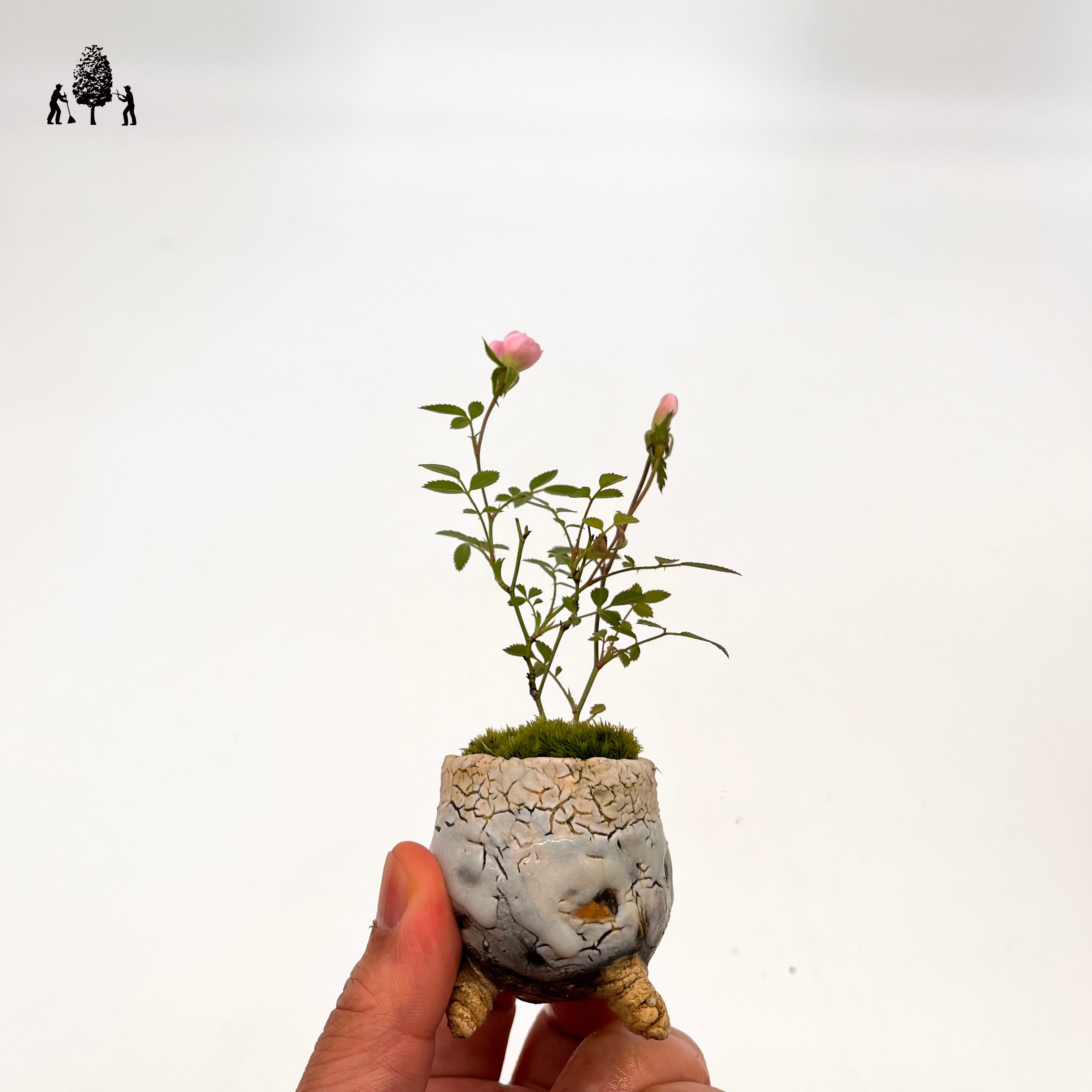美しい一点物の雅薔薇 beanpot by YOYO窯Iは、手捻りの鉢に植えられた指先サイズのミニ薔薇の盆栽です。春から初夏にかけて優雅な花を咲かせ、秋にも稀に開花する美しい鉢植えです。