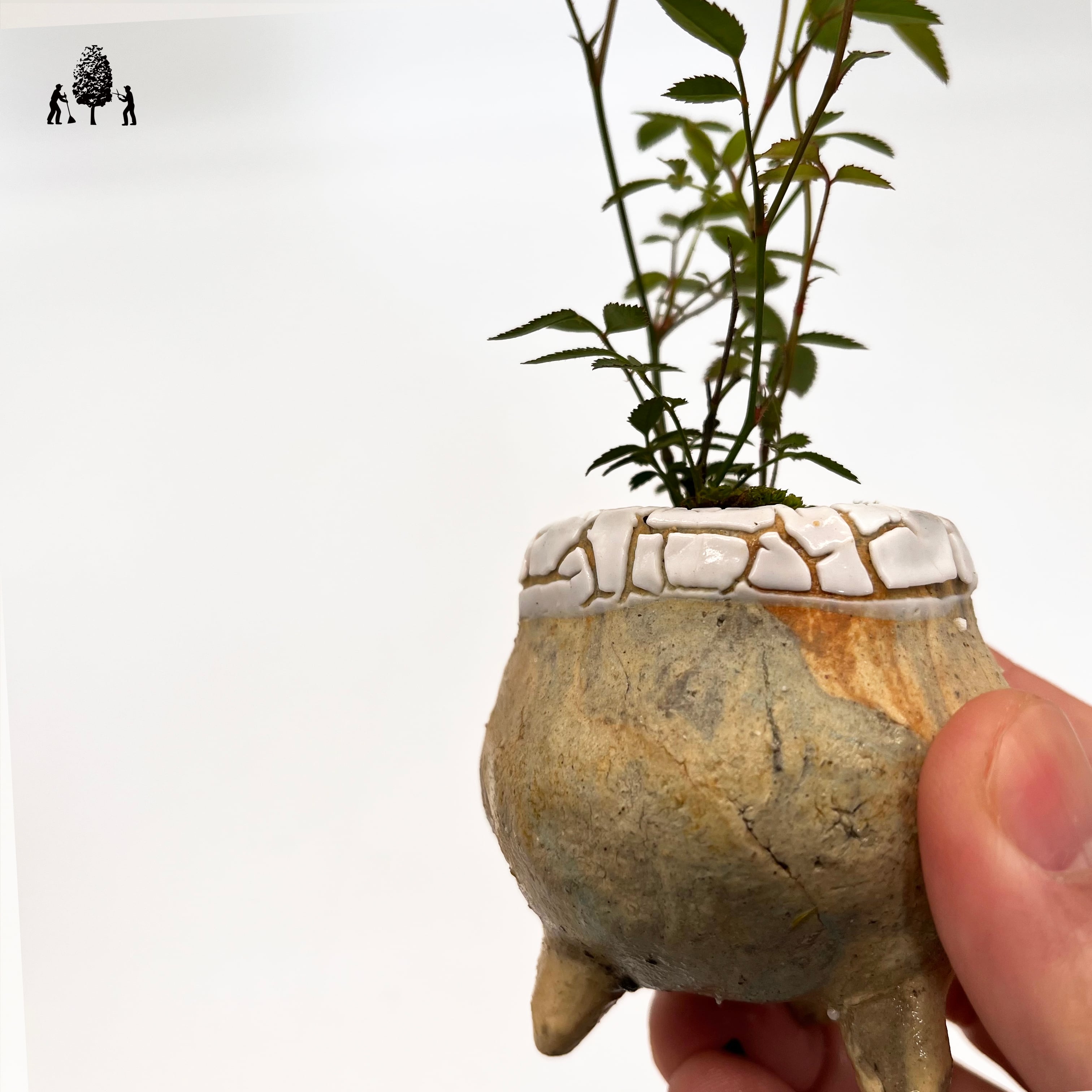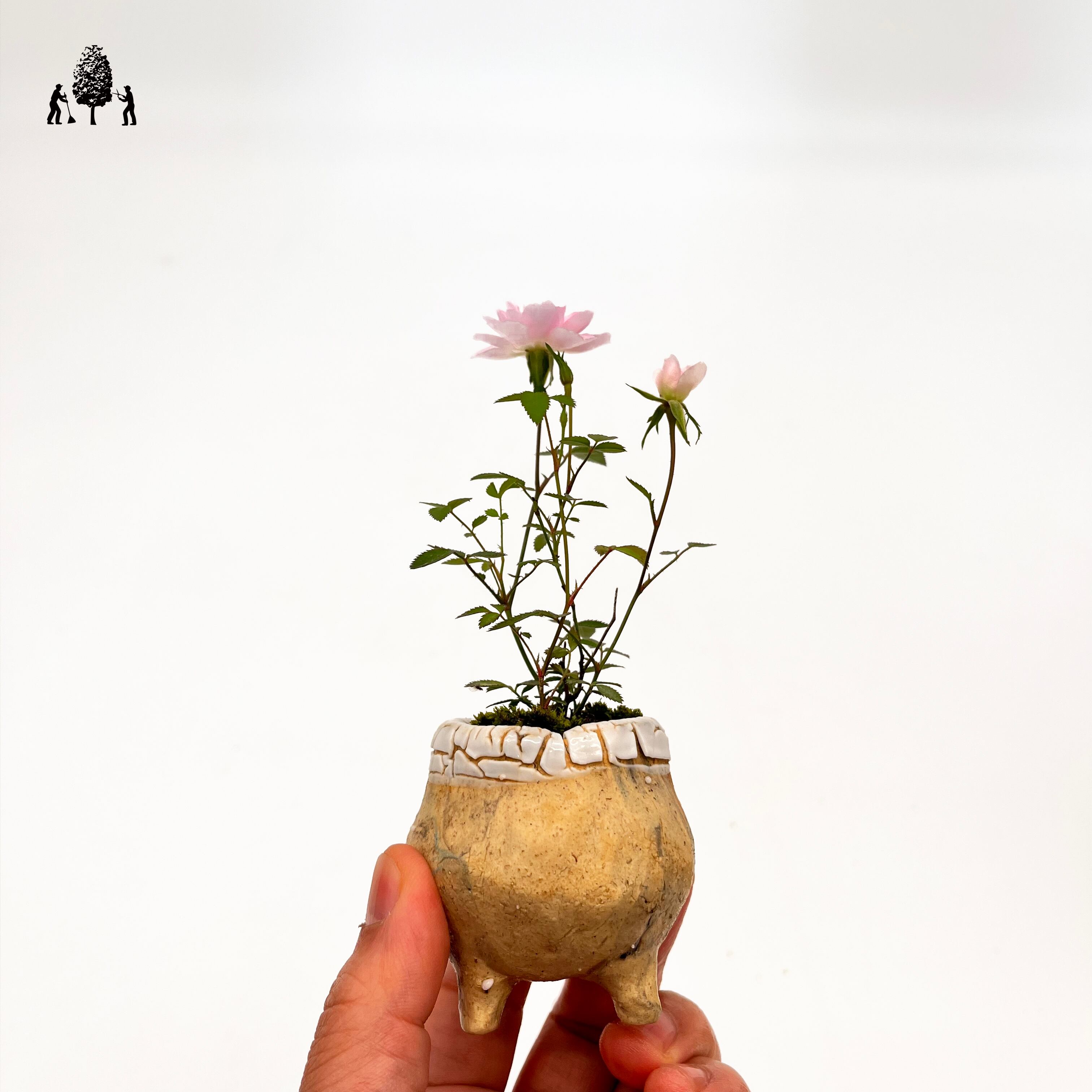 「雅薔薇 beanpot by YOYO窯」は、小さな鉢に植えられたミニ薔薇の盆栽です。手捻りで作られた一点物の鉢が、薔薇の美しさを一層引き立てます。春から初夏にかけては、小さな花が色鮮やかに咲き誇り、あなたのお部屋を優雅な空間に変えてくれます。秋にも開花する場合があり、四季折々の表情を楽しむことができます。