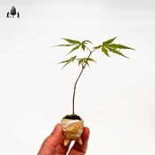 手捻りの一点物鉢に植えられた2年目のモミジの盆栽、モミジベビー beanpot by YOYO窯です。手作りならではの温かみが感じられ、お部屋のアクセントにぴったり。春夏の新緑、秋の紅葉が美しい季節には、涼しさや温かみを与えてくれます。冬の落葉は少し寂しいですが春の新芽に心が救われます。