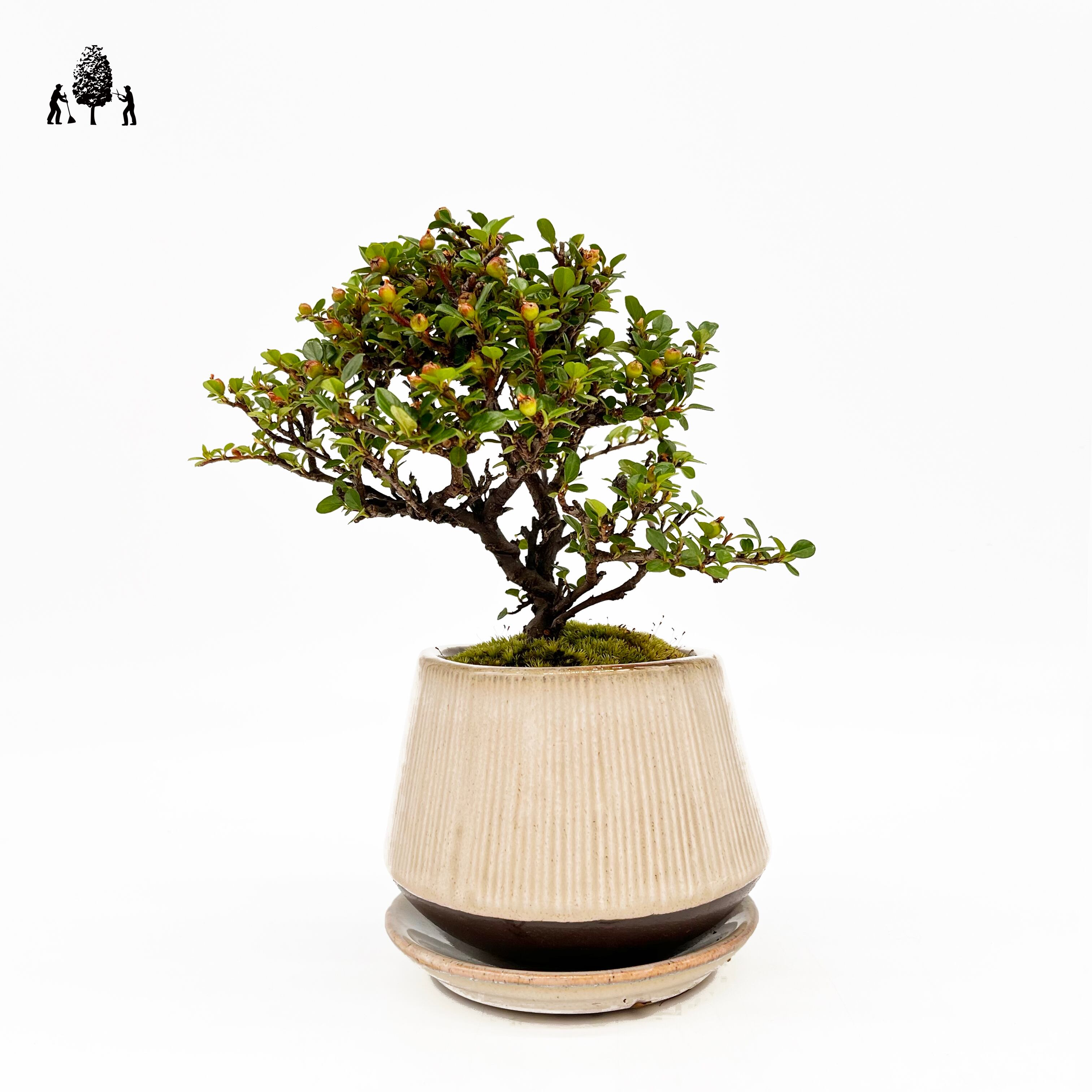 春から初夏にかけてピンクの小さな花をたくさん咲かせます。その後結実し秋には赤く熟した実がたくさん付きます。季節の変化を教えてくれる魅力的な1鉢です。