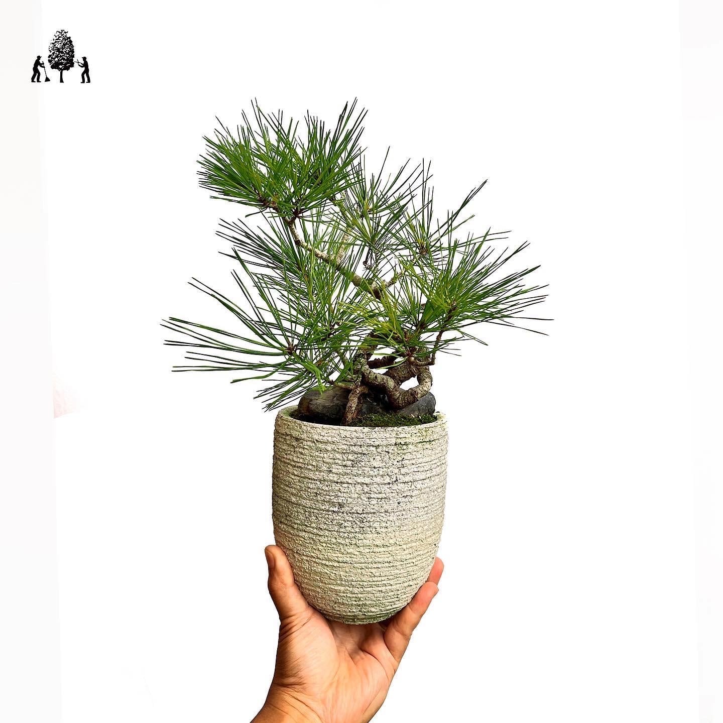 代表的な樹種、黒松の根元が岩に絡んでいる盆栽です。