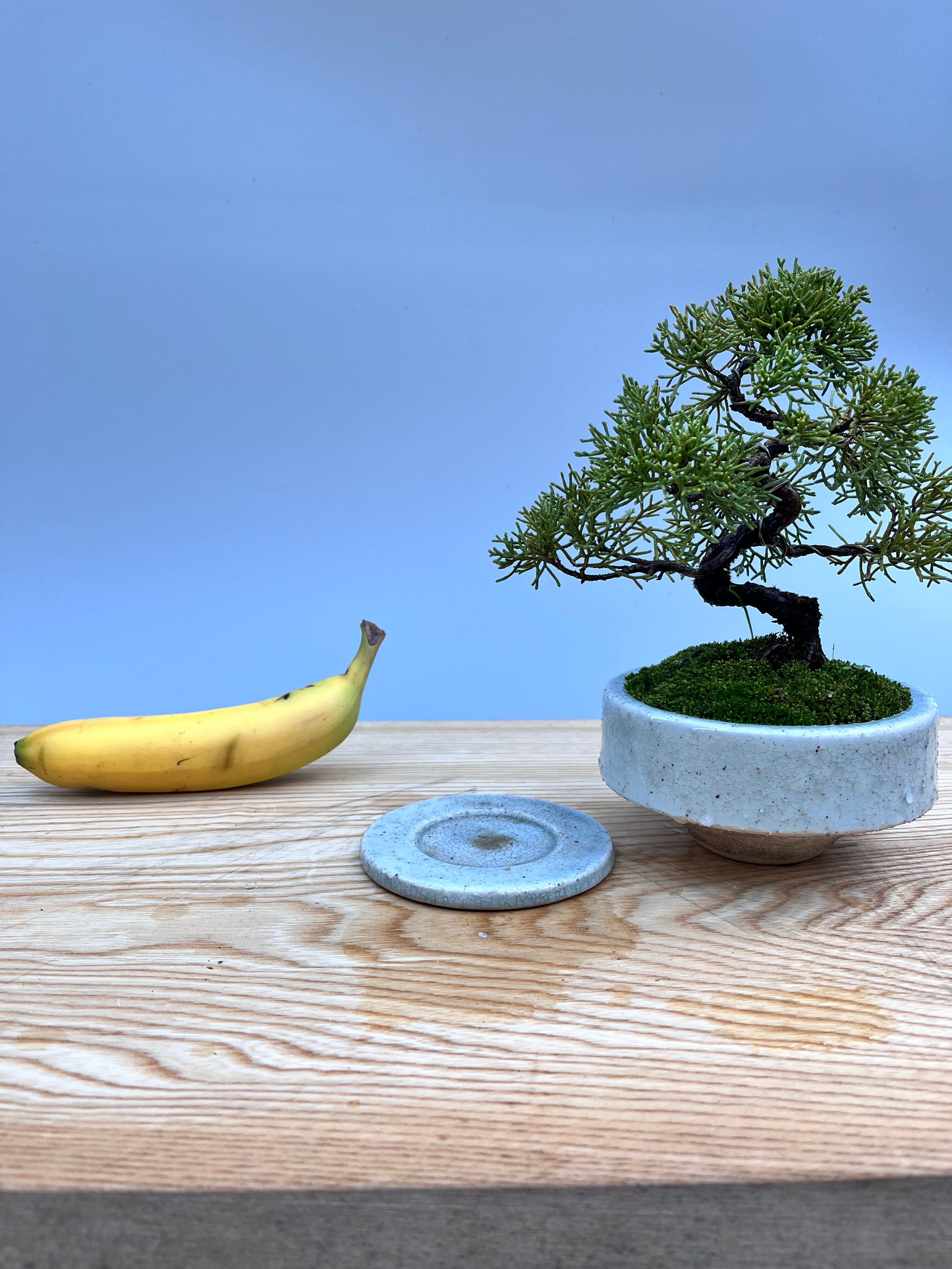 手のひらサイズの真柏盆栽。常緑樹ならではの美しい緑をお楽しみいただけます。強健な性質を持つ真柏は、育てる楽しさもひとしお!これからの成長が楽しみな一品です。